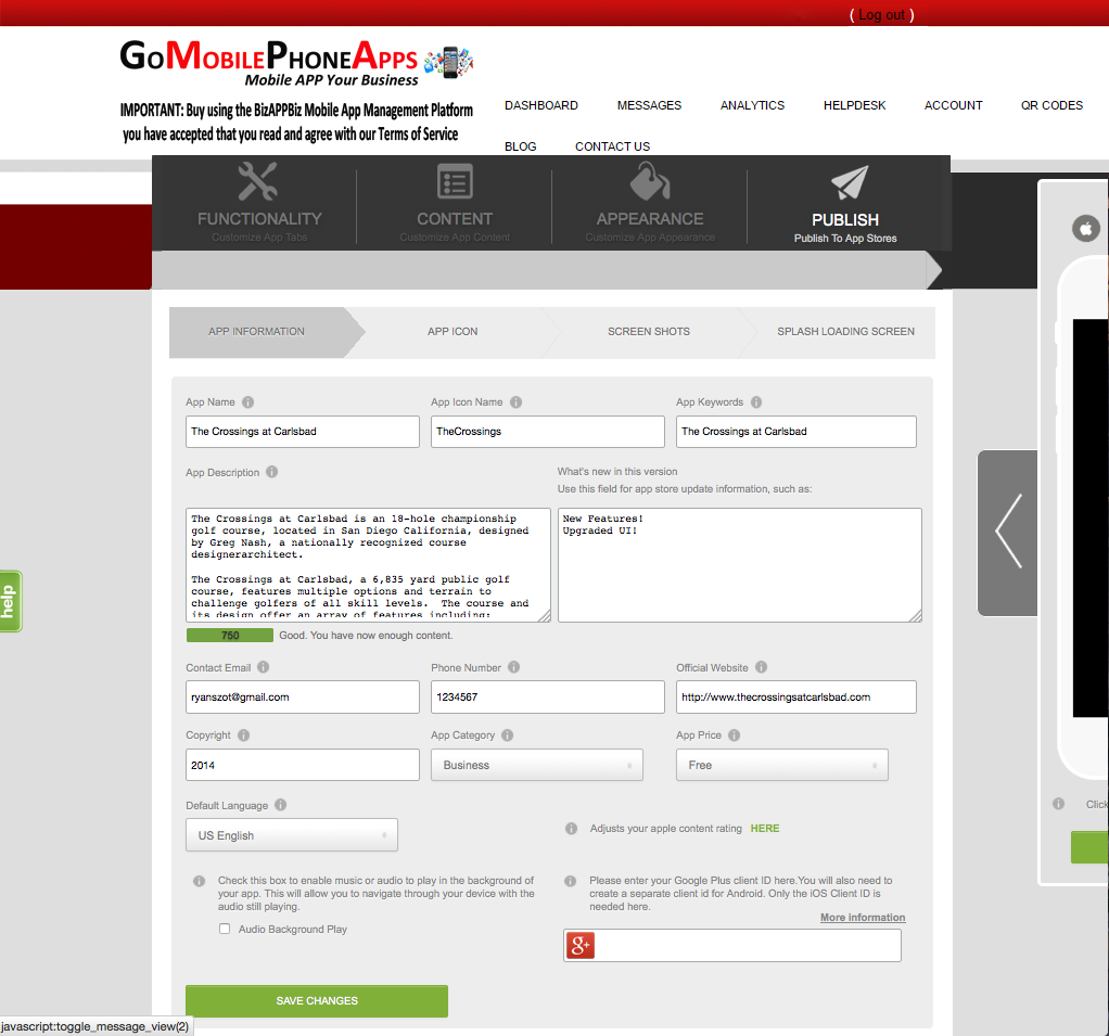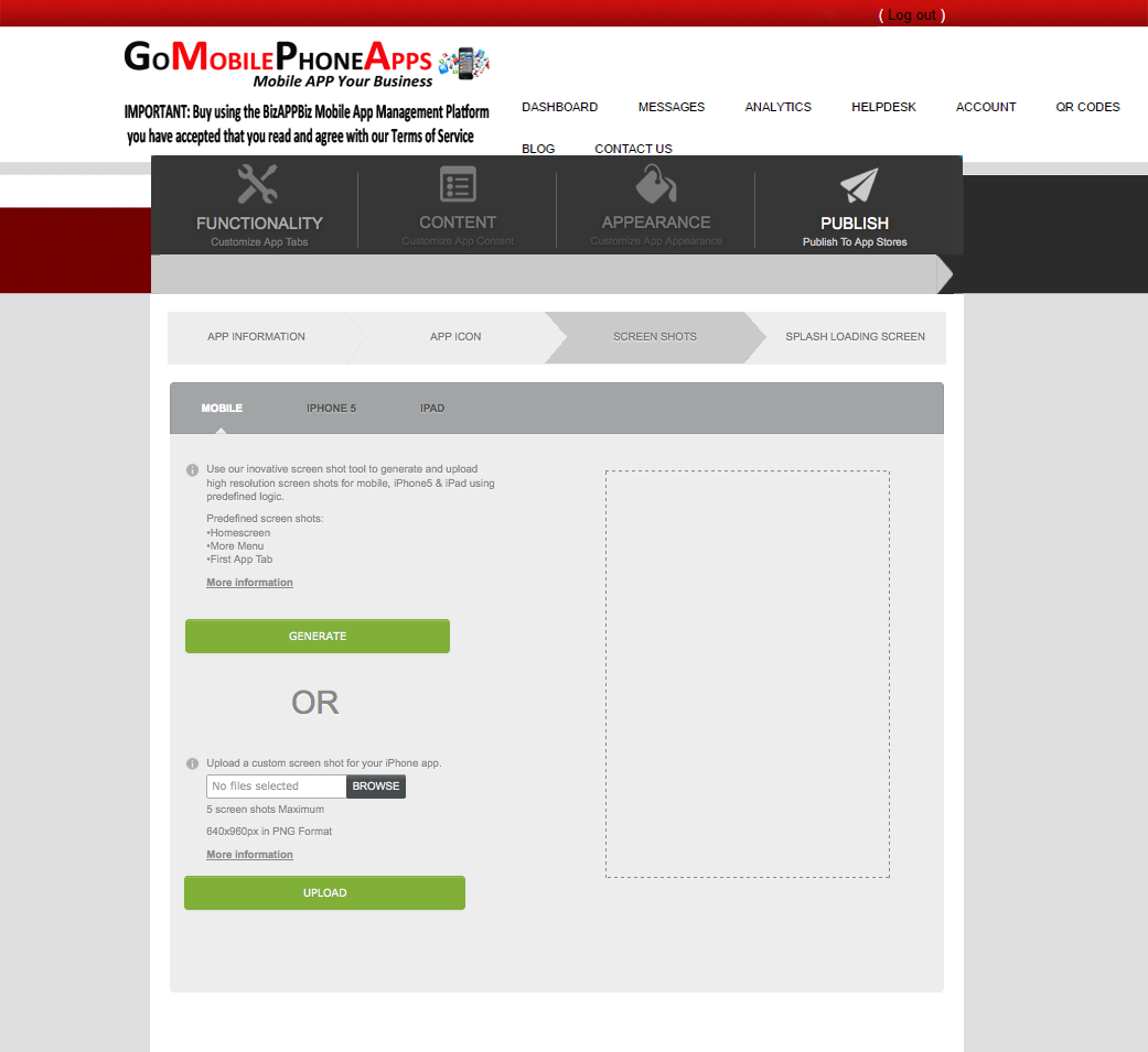 We’ve rolled out our innovative screen shot generation tool which allows any user to automatically generate and upload high resolution screen shots for your Mobile, iPhone 5 & iPad devices using predefined logic. Simply click the “Generate” button and your screen shots will appear within the builder shortly.