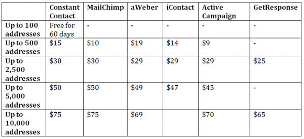 (In the table below, some pricing levels for certain products were omitted to make comparison easier. Also, the number of emails that can be sent each month are unlimited.)