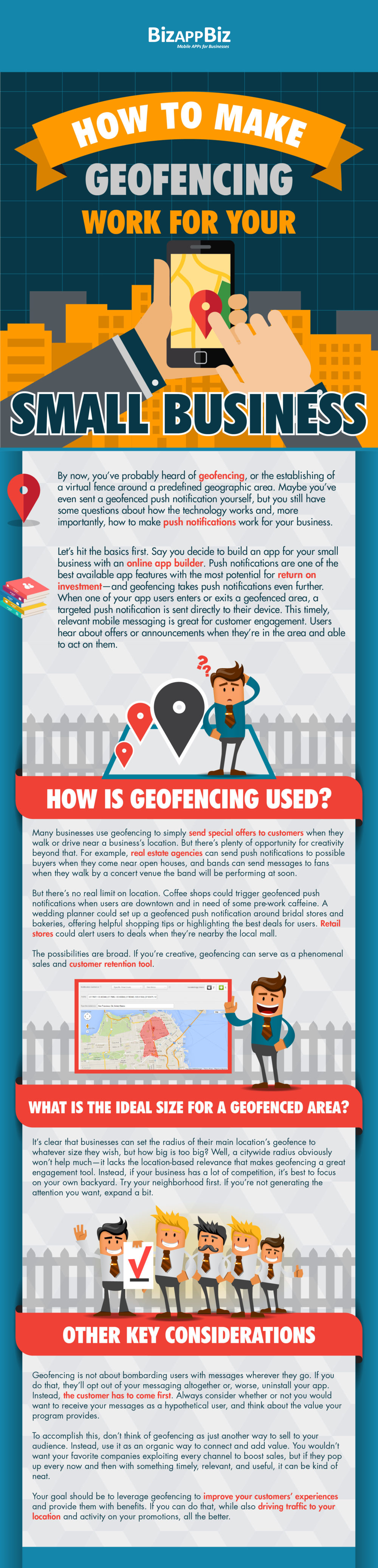 It’s clear that businesses can set the radius of their main location’s geofence to whatever size they wish, but how big is too big? Well, a citywide radius obviously won’t help much—it lacks the location-based relevance that makes geofencing a great engagement tool. Instead, if your business has a lot of competition, it’s best to focus on your own backyard. Try your neighborhood first. If you’re not generating the attention you want, expand a bit.