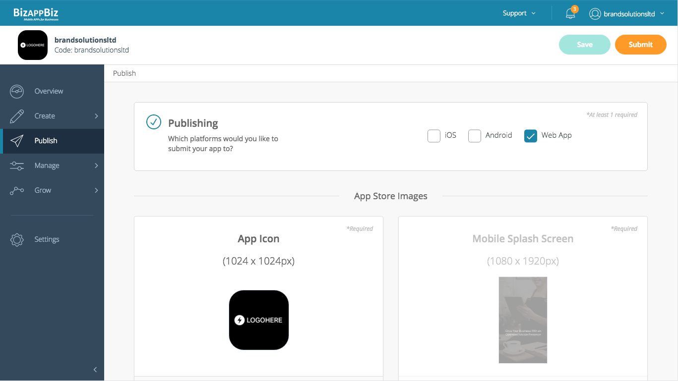When you build an app on our site, you can publish for a “Web App”, iOS, and Android all at once or individually. Unlike iOS & Android apps, Web Apps do not need to be republished to upgrade to the latest features and design. Each time we make improvements to our Web App, you’ll see those changes reflected in your app. Once you’ve built your app, you can publish for “Web App” to take your app live.